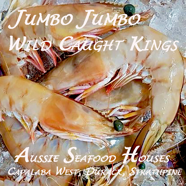 You can put a saddle on these Jumbo Jumbo Large Kings  .. Wild Caught Queensland Raw (6 to 8 size grade) Ocean kings .. Unbelievable VALUE for $49.99 kg .. You will see these elsewhere for well over $60 kg .. Ready Now at all 3 Aussie Seafood House’s ..Capalaba West, Durack, Strathpine .. Savour the Flavour of  Queensland Wild Caught .. All stores Open 7 Days a Week