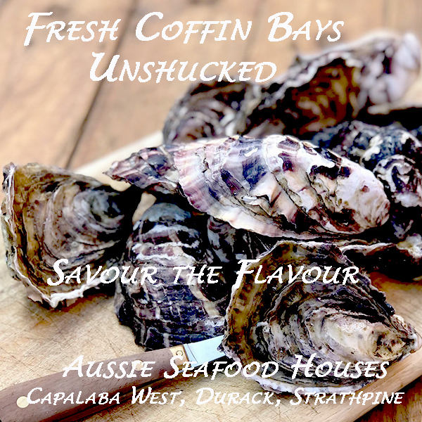 Direct from Coffin Bay, South Australia .. Fresh  Extra large Unshucked ( unopened) Oysters … Available at all 3 Aussie Seafood Houses .. Capalaba West, Durack, Strathpine Stores Open 7 Days a Week ..