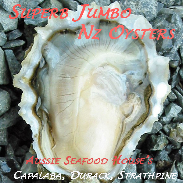 These have been very difficult to get from NZ this Season .. All 3 Aussie Seafood Houses have stock of these Jumbo NZ Oysters .. Sold only in the Half Dozen Trays for $22.99 a tray … 3 Stores .. Capalaba West, Durack, Strathpine .. If you would like these prepared with our famous Kilpatrick or Mornay please ask in store and add $5 to natural price .. All 3 Aussie Seafood Houses Open 7 Days a Week .. Capalaba West, Durack, Strathpine