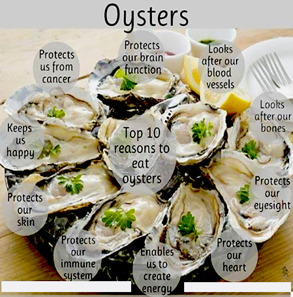 Few other foods can compare with the nutritional balance of oysters. The oyster is a well-balanced, easily digestible and nutritious food, rich in minerals (zinc, selenium, magnesium) and vitamins (A, B1, B2 and C). They are low in cholesterol, and contain approximately one quarter of the cholesterol of prawns and squid, equal to most other fish. They are well below the cholesterol levels in red meat and some poultry. The oyster is unique in its ability to live out of water in cool moist conditions. So in a country as vast as Australia, this means that fresh, unfrozen product can be available almost anywhere throughout the year.
